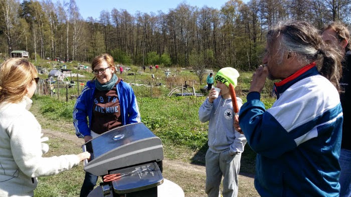 Aurinko paistoi ja kivaa oli. Palstamakkaratkin grillattiin. Tämä oli oikein mukava tapa virallisesti avata palstakausi. Yhdessä. Kyllä siellä palstalla taas ehtii yksin touhuta ja tuskastua. Kimpassa on voimaa!